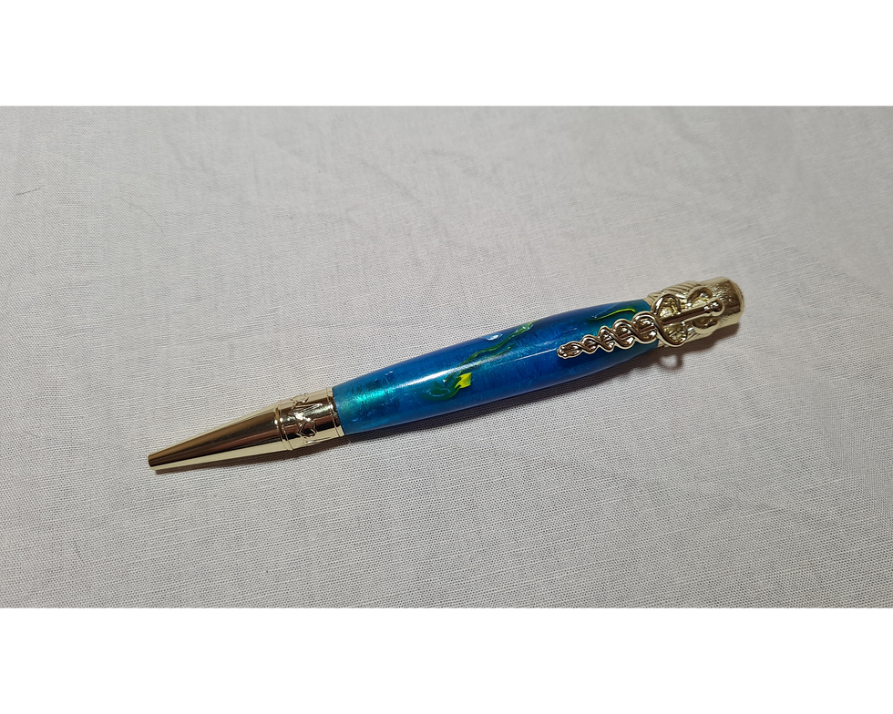 Medical Twist Pen - Gold with Blue Green Ocean Acrylic